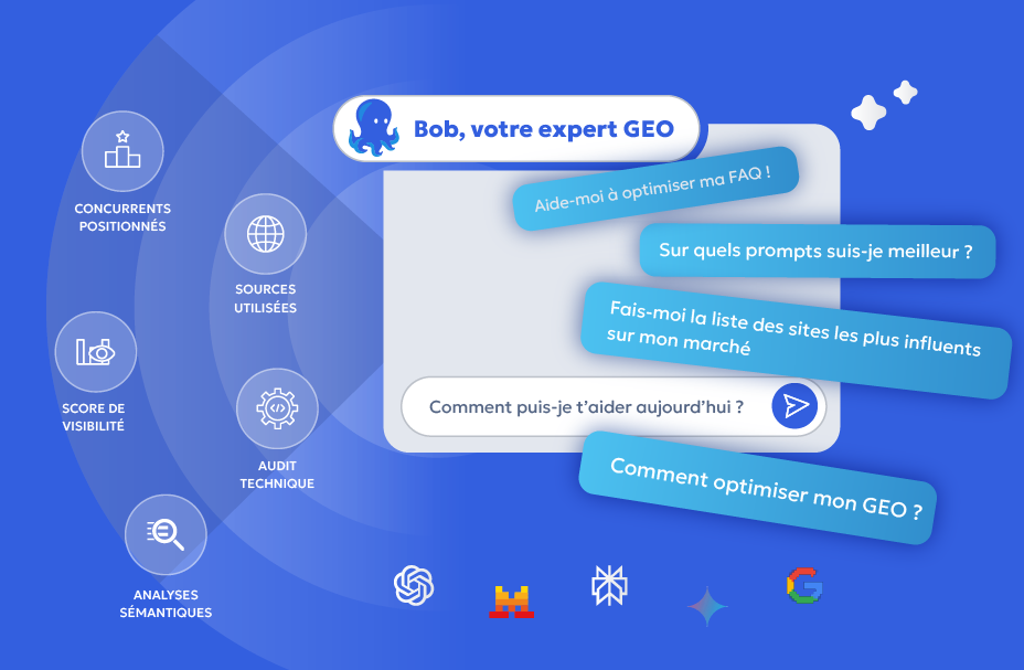 Création d'une mascotte expert GEO et d'une illustration de la fonctionnalité "Agent GEO"