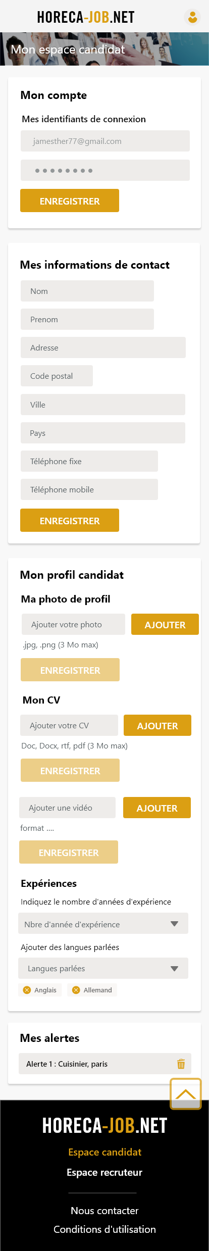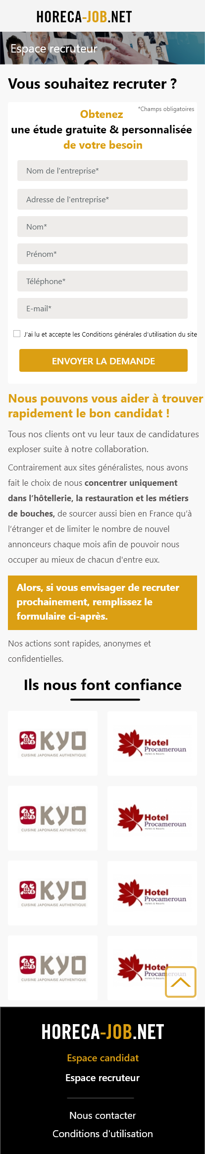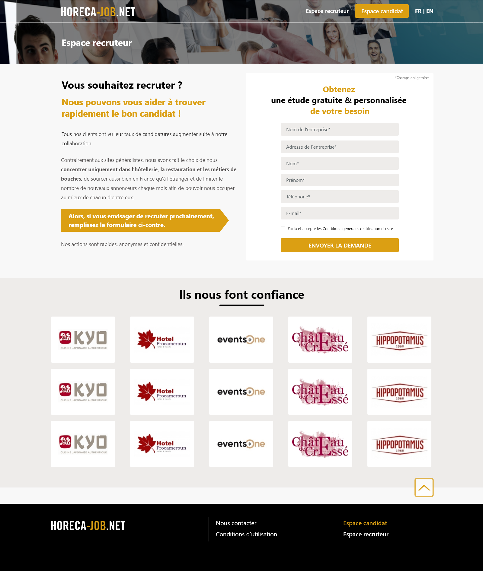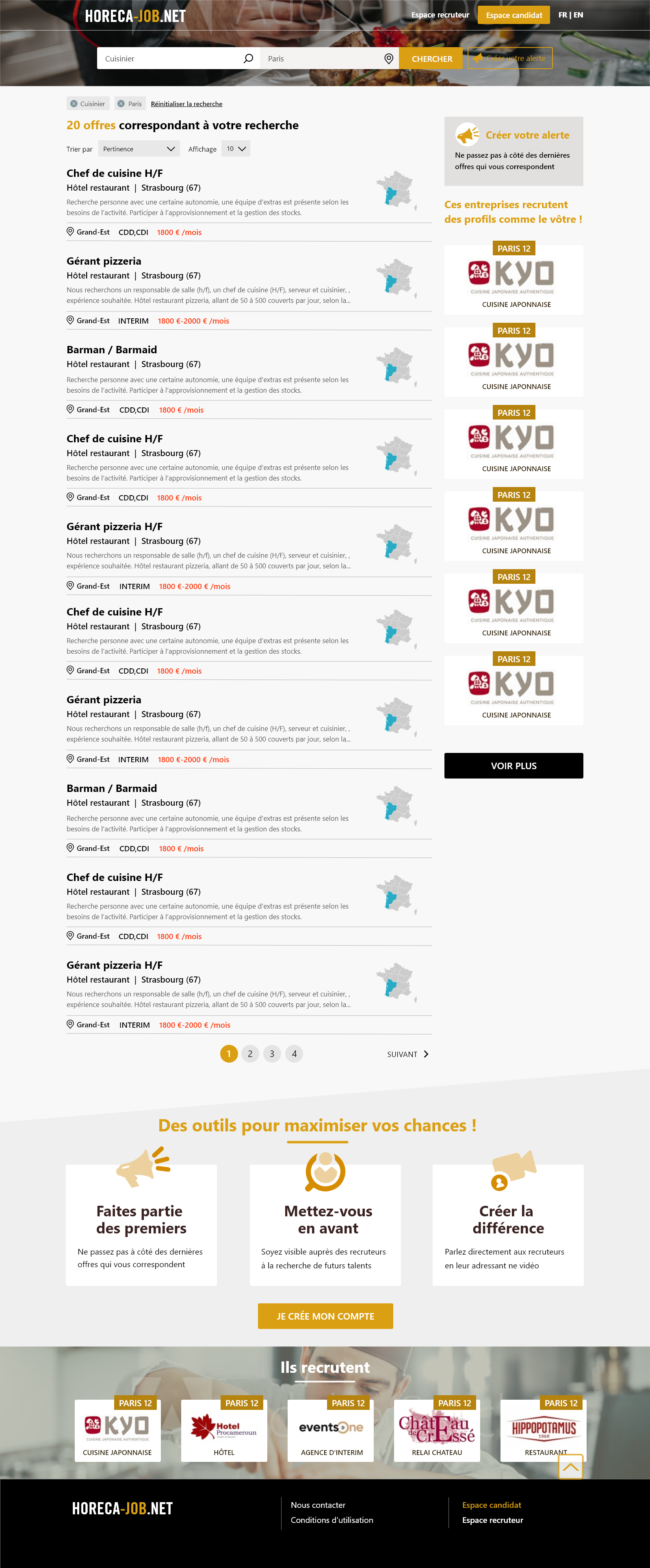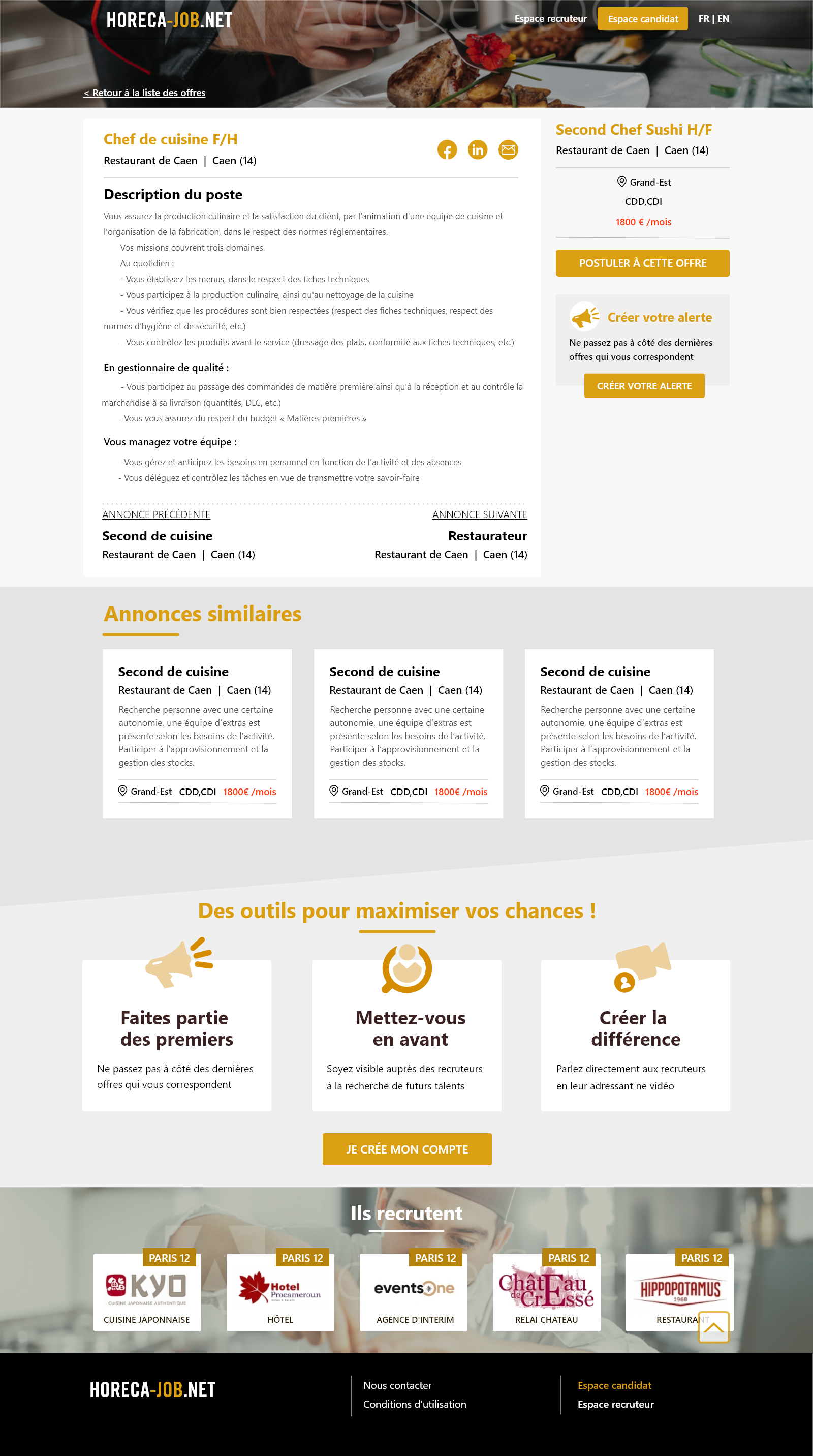 Conception Réalisation UI-UX d'un site de recrutement spécialisé dans les métiers de bouche